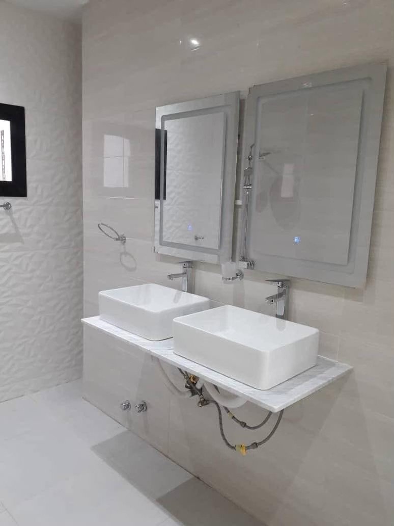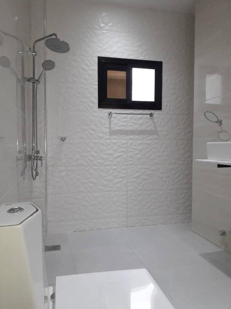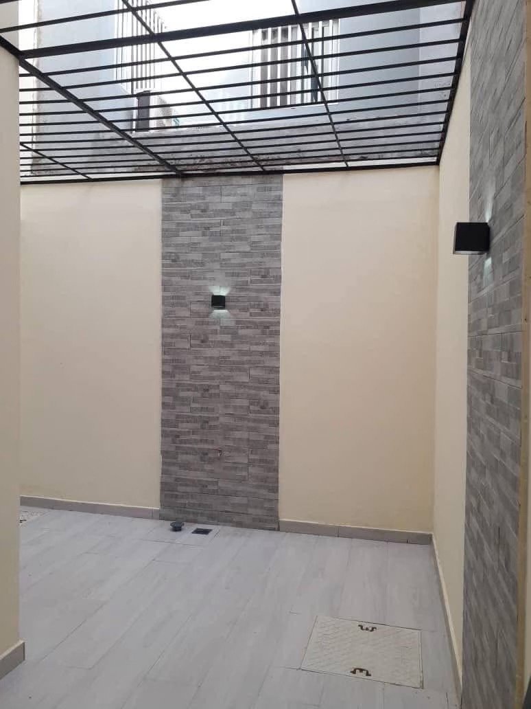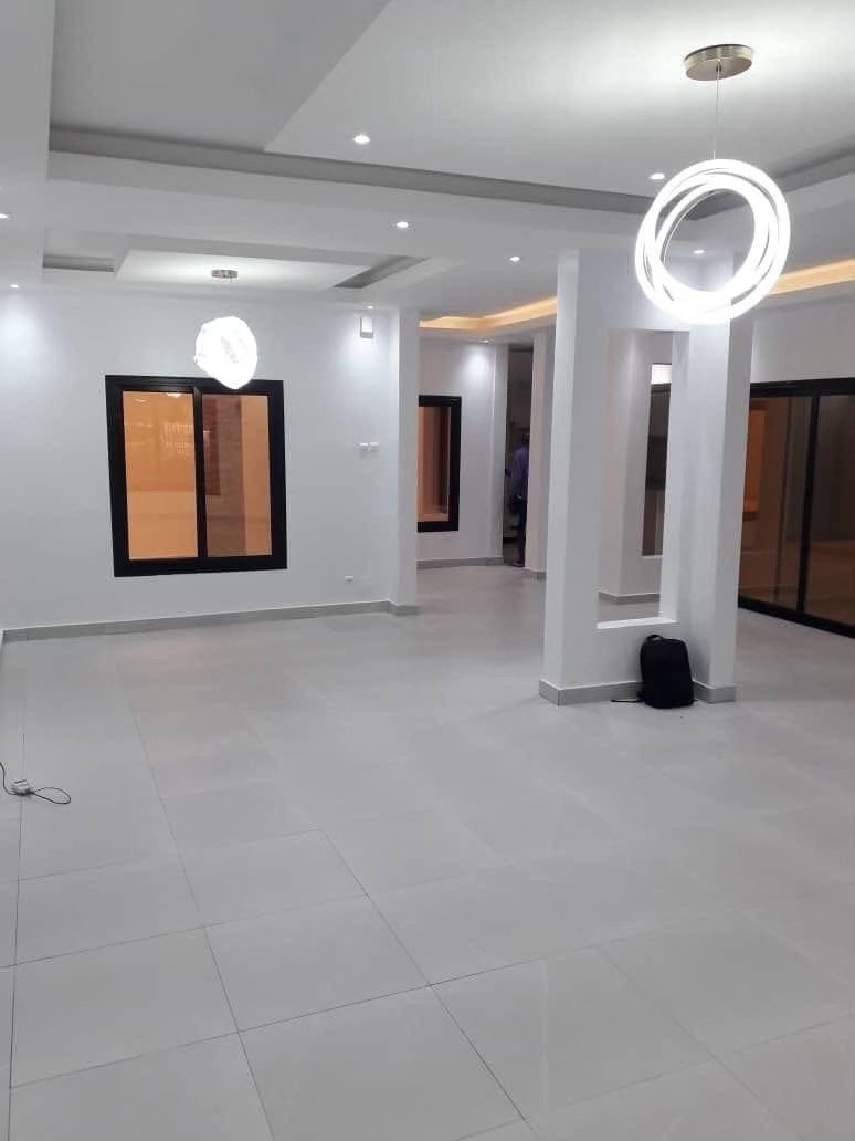 – *Composition* : 4 chambres avec salles d’eau, 2 salons, 2 cuisines(1 moderne équipée semi ouverte aquipee de four, micro-ondes gazinière sur le sejour au rdc et 1 cuisine simple avec des placards plan de travail au 2ème étage), 2 patios, 1 toilette visiteurs, 1 toilettes domestique, 1 accès terrasse bien aménagée, 1 espace buanderie, 1 espace familial, placards et rangements, 4 balcons, 1 garage, réservoir d’eau et surpresseur, sécurité renforcée.